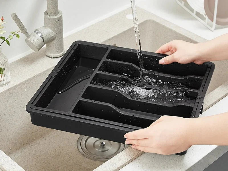 Cansado de perder tempo procurando talheres na gaveta? Com o Organizador de Gaveta Expansível e Ajustável para Talheres e Cutelaria, você terá seus utensílios sempre organizados e acessíveis.