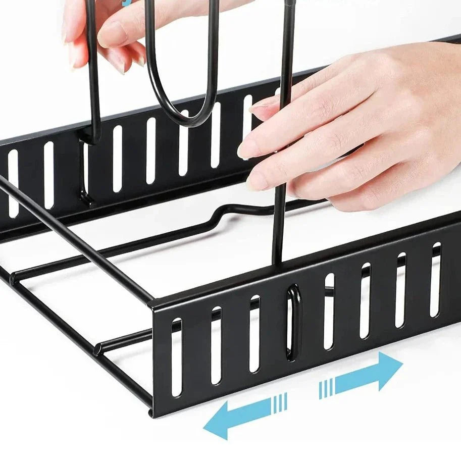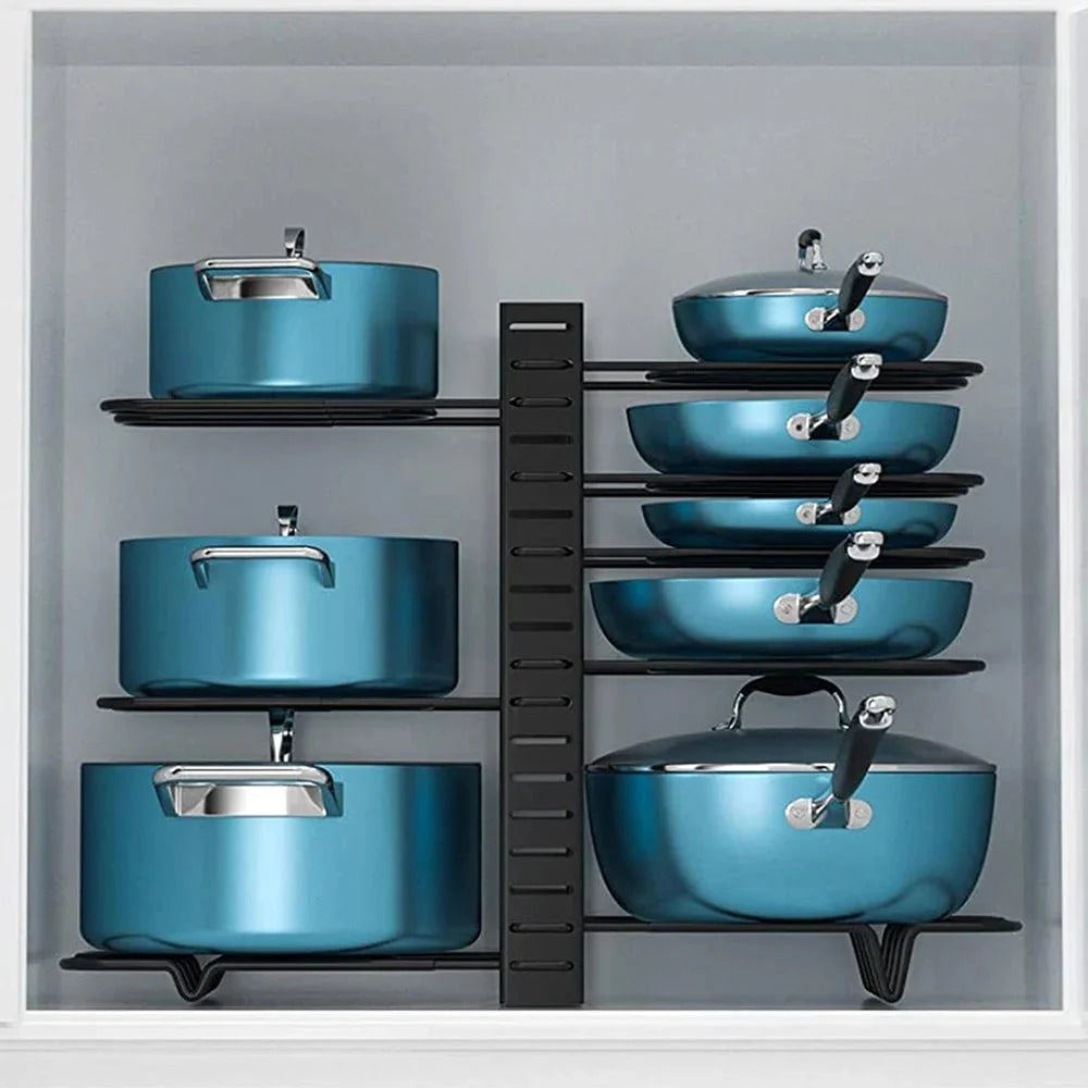 Chega de panelas empilhadas e tampas perdidas! Com a Prateleira Ajustável, você organiza sua cozinha com praticidade e estilo.