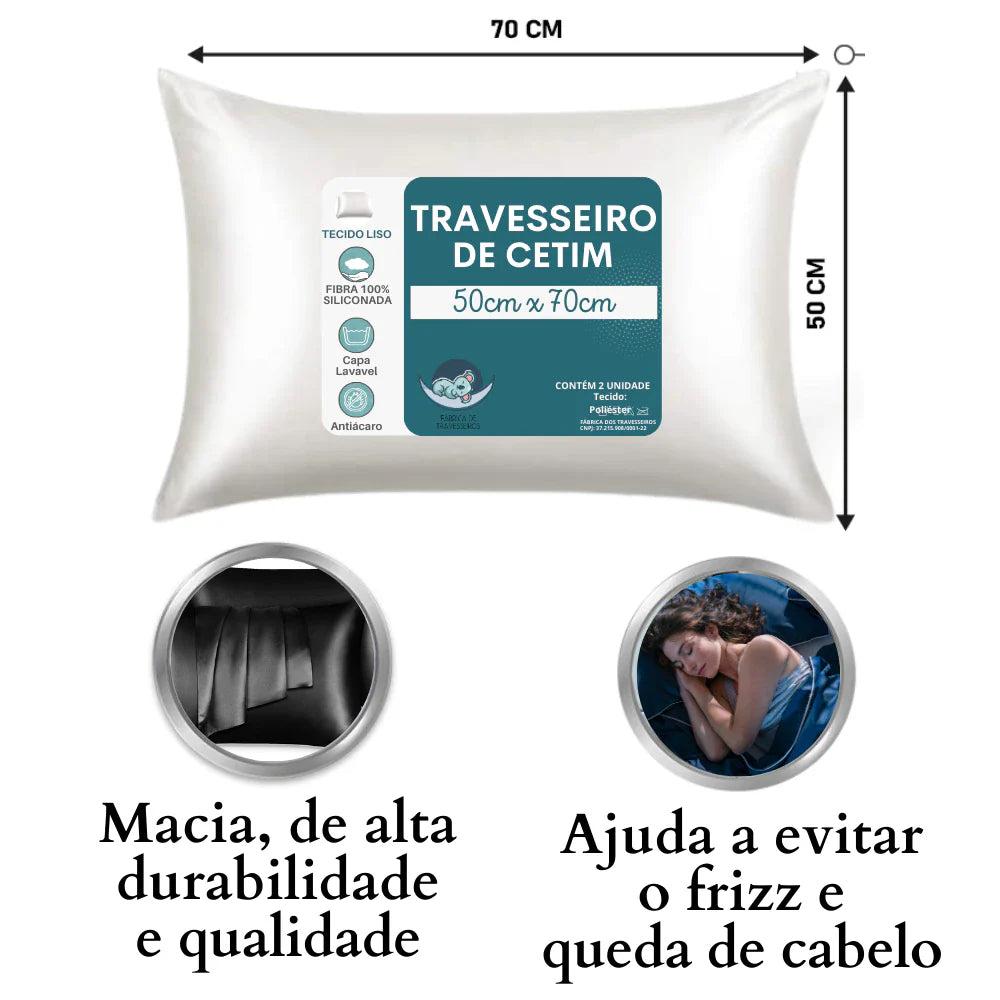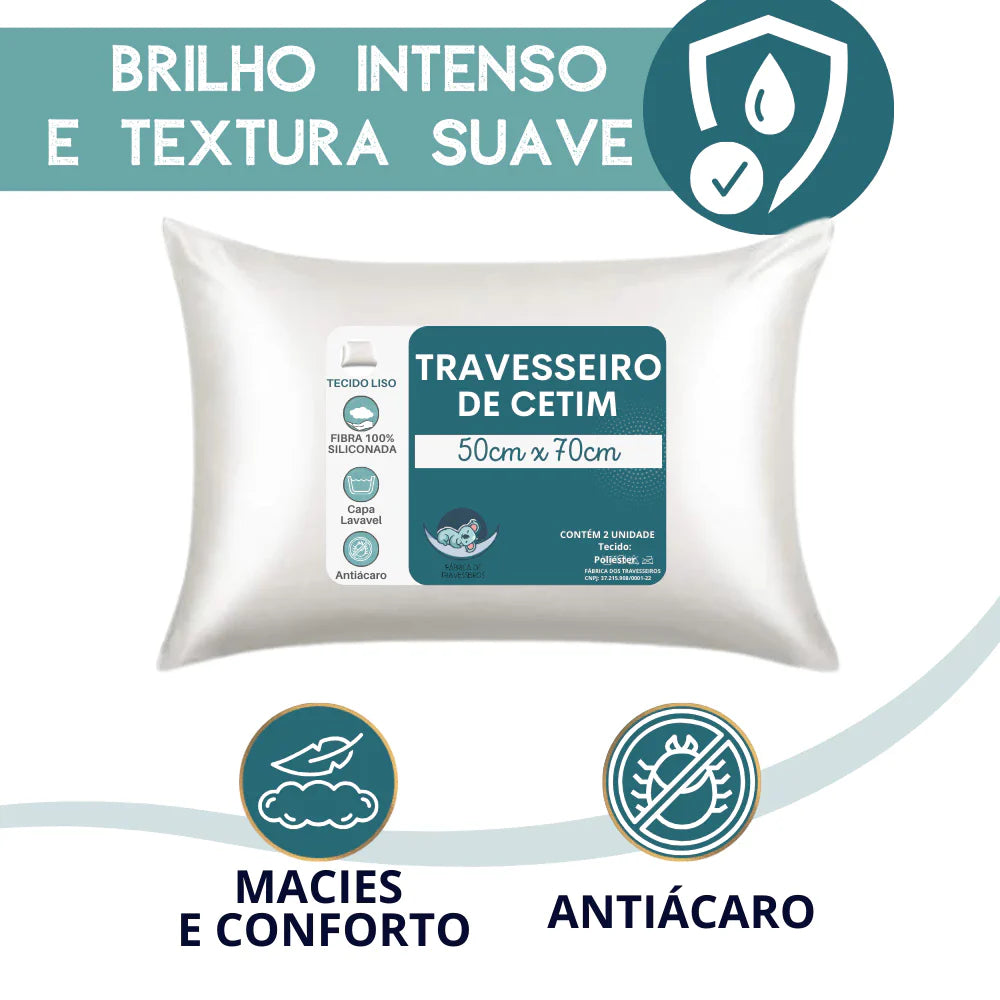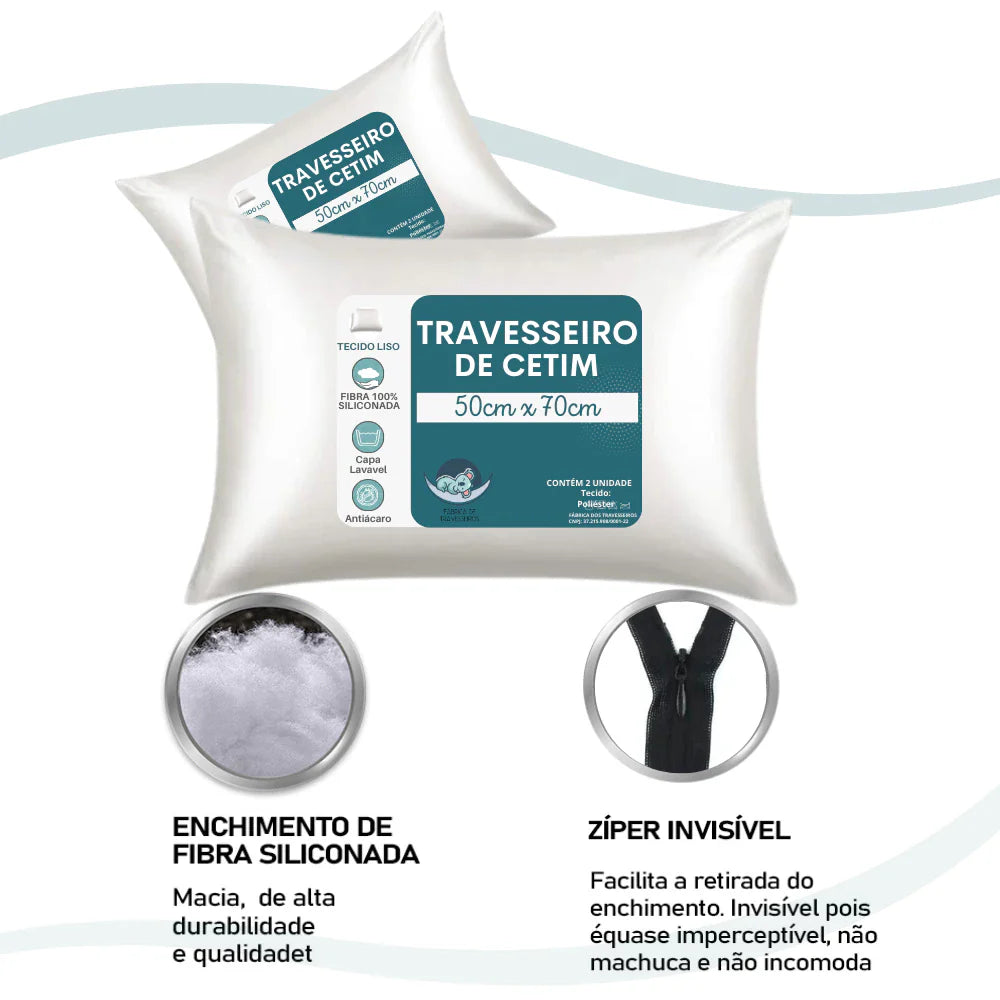 Transforme suas noites com o Kit de Travesseiros de Cetim de Seda em Fibra de Silicone - a escolha definitiva para quem valoriza o conforto supremo e uma noite de sono perfeita!
