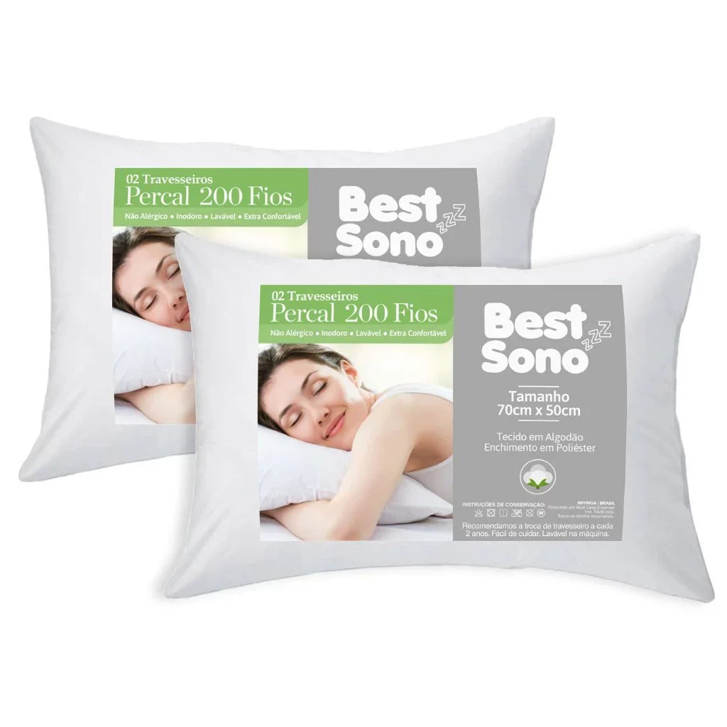 Transforme suas noites com o Kit de Travesseiros Percal 200 Fios em Fibra de Silicone - a escolha definitiva para quem valoriza o conforto supremo e uma noite de sono perfeita!
