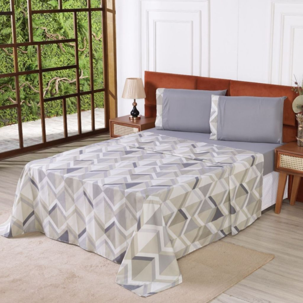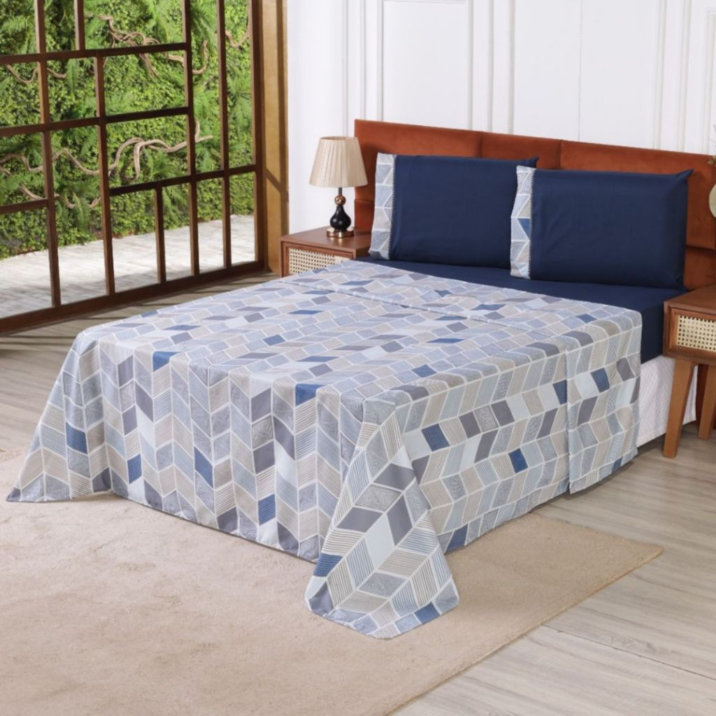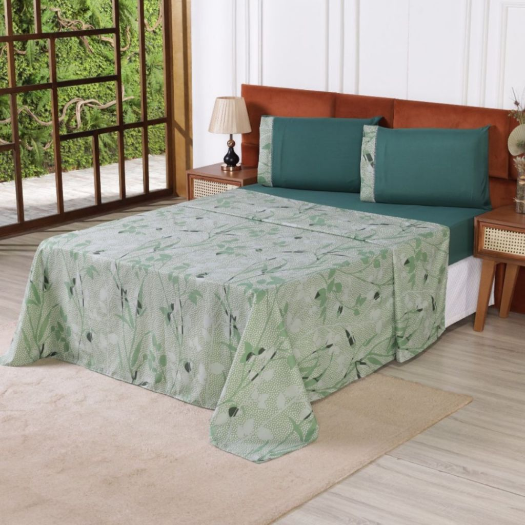 - Conjunto Completo (04 Peças): Contém 1 lençol de baixo com elástico, 1 lençol de cima e 2 fronhas coordenadas, garantindo uma cama perfeita, tanto em conforto quanto em estética.